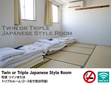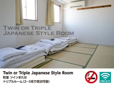 Tatami-style room: lantai jerami tradisional Jepang, dengan futon untuk tidur.