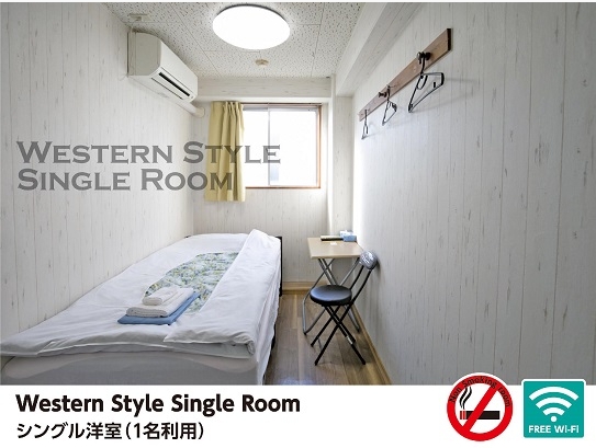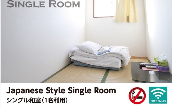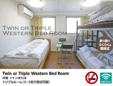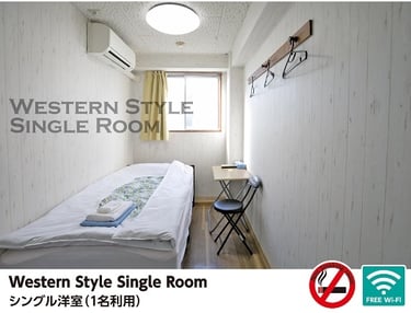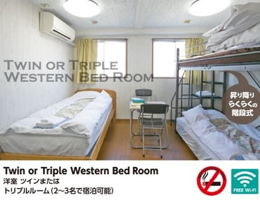 Western-style room: ranjang standar dengan lantai ubin atau kayu.